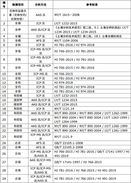 第三次土壤普查土壤樣品的部分檢測項目與方法