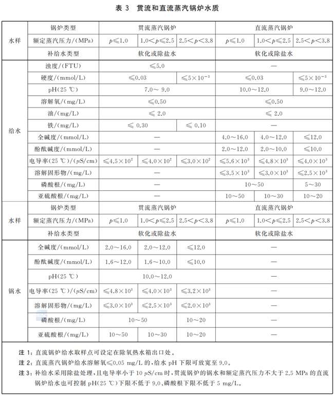 4.1 貫流和直流蒸汽鍋爐給水和鍋水水質(zhì)應符合表3的規(guī)定。