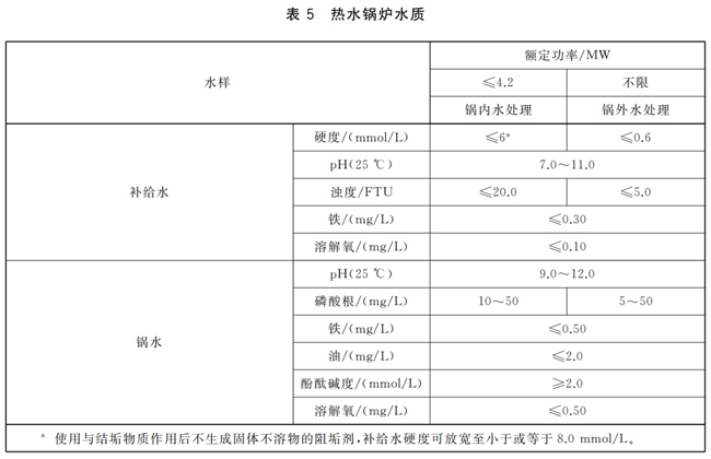 6.1 熱水鍋爐補給水和鍋水水質(zhì)應符合表5的規(guī)定。