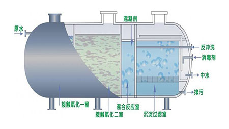 3、污水處理設備中的A/O生物處理工藝采用推流式生物接觸氧化池,它的處理效果優(yōu)于完全混合式或二、三級串聯(lián)完全混合式生物接觸氧化池。該生物氧化池比活性污泥池體積小,對水質(zhì)適應性強,而且能耐沖擊,性能好,出水水質(zhì)也極其穩(wěn)定。采用新型彈性立體材料,具有實際比表面積大,微生物掛膜、脫膜方便,而且對有機物去除率高,能提高空氣中氧在水中的溶解度。