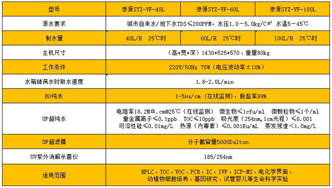 SYZ-VF落地式實驗室純水機產(chǎn)品參數(shù)